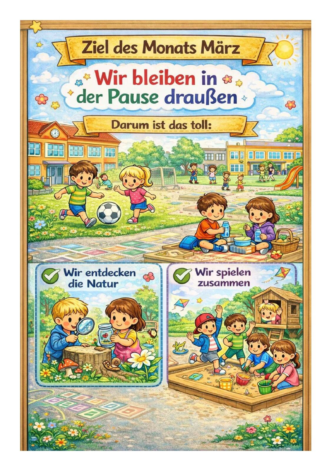 Im Monat März lautet unser Ziel des Monats: „Wir bleiben in der Pause draußen“.