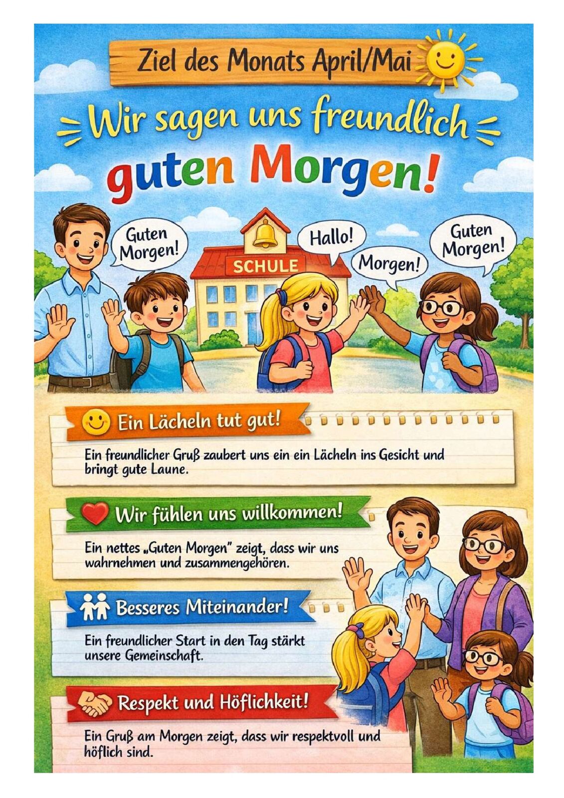 Ziel des Monats April/Mai: Wir sagen uns freundlich „Guten Morgen“